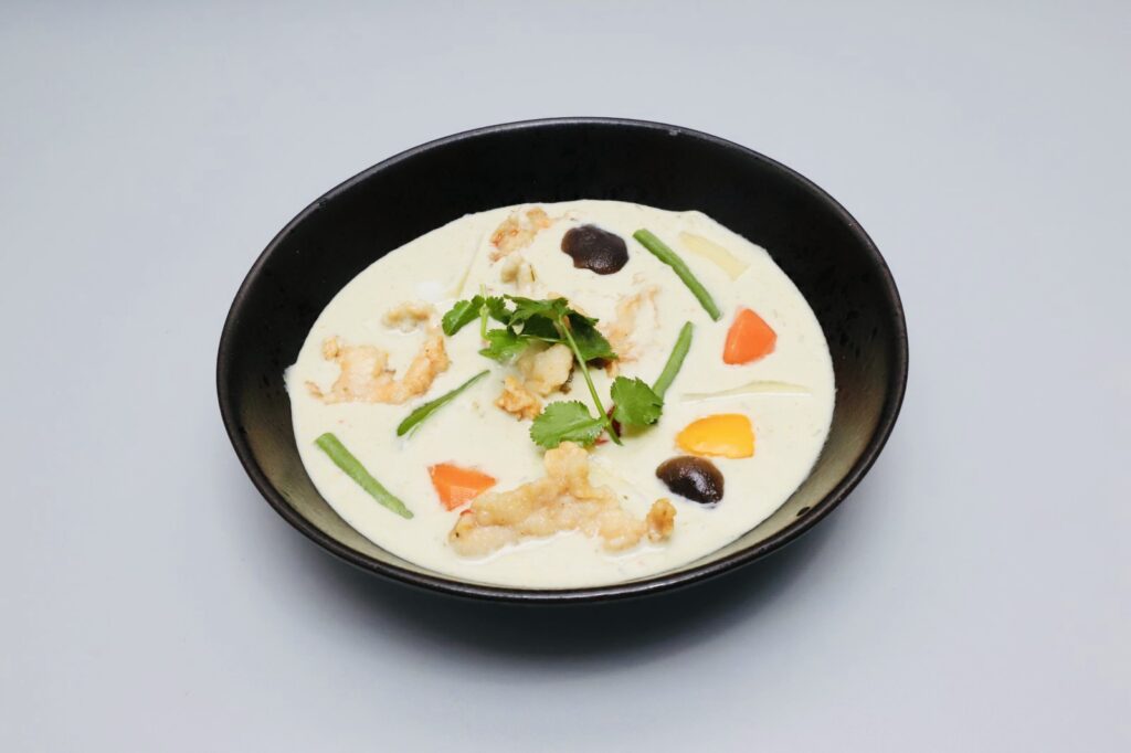 Chicken, beef, pork and vegetables cooked in creamy coconut Thai red curry sauce