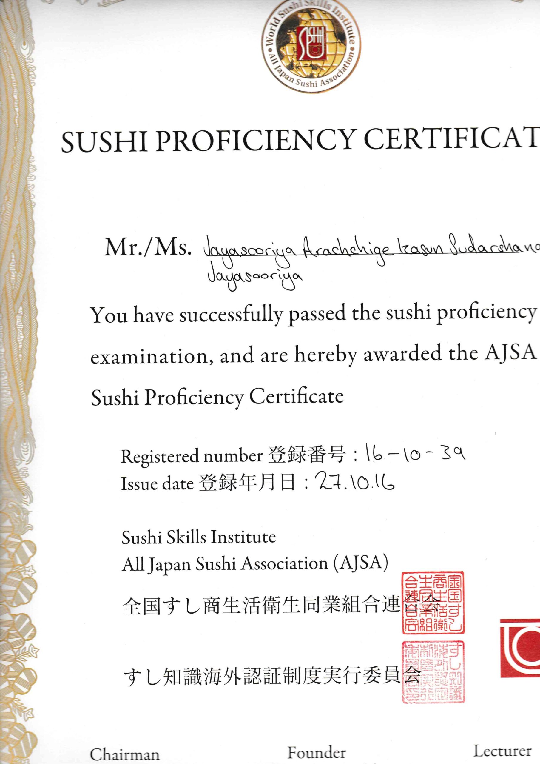 At UMI Pan Asian Kitchen, we are proud to have Chef Kasun Jayasooriya leading our culinary team. An award-winning sushi chef, Chef Kasun brings a wealth of experience and a passion for Pan Asian cuisine to our kitchen. Having successfully passed the sushi proficiency examination on October 27, 2016, his expertise in sushi is unparalleled.