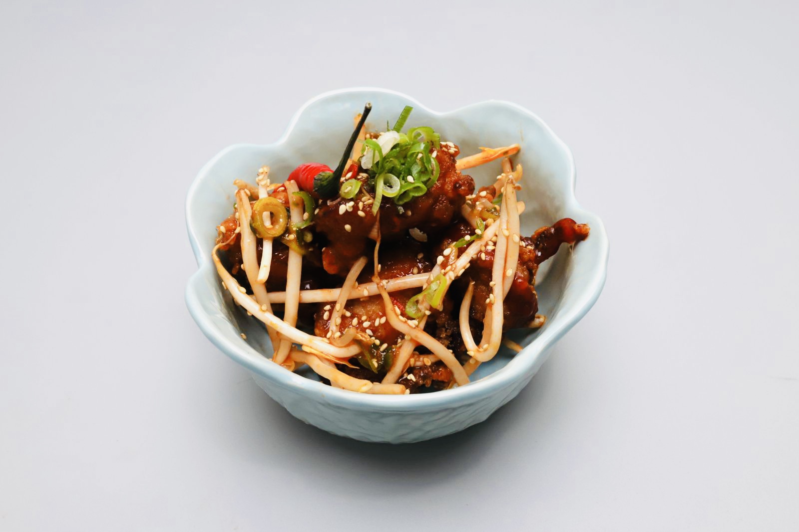 Deep fried boneless chicken thighs in spicy and sour sauce (5 pieces)